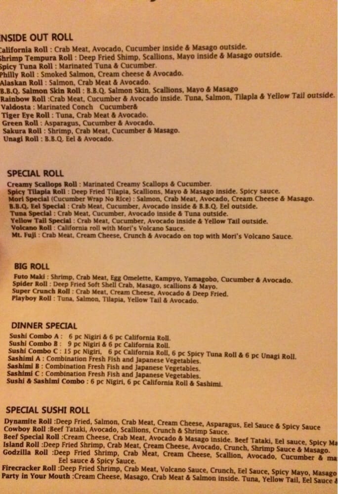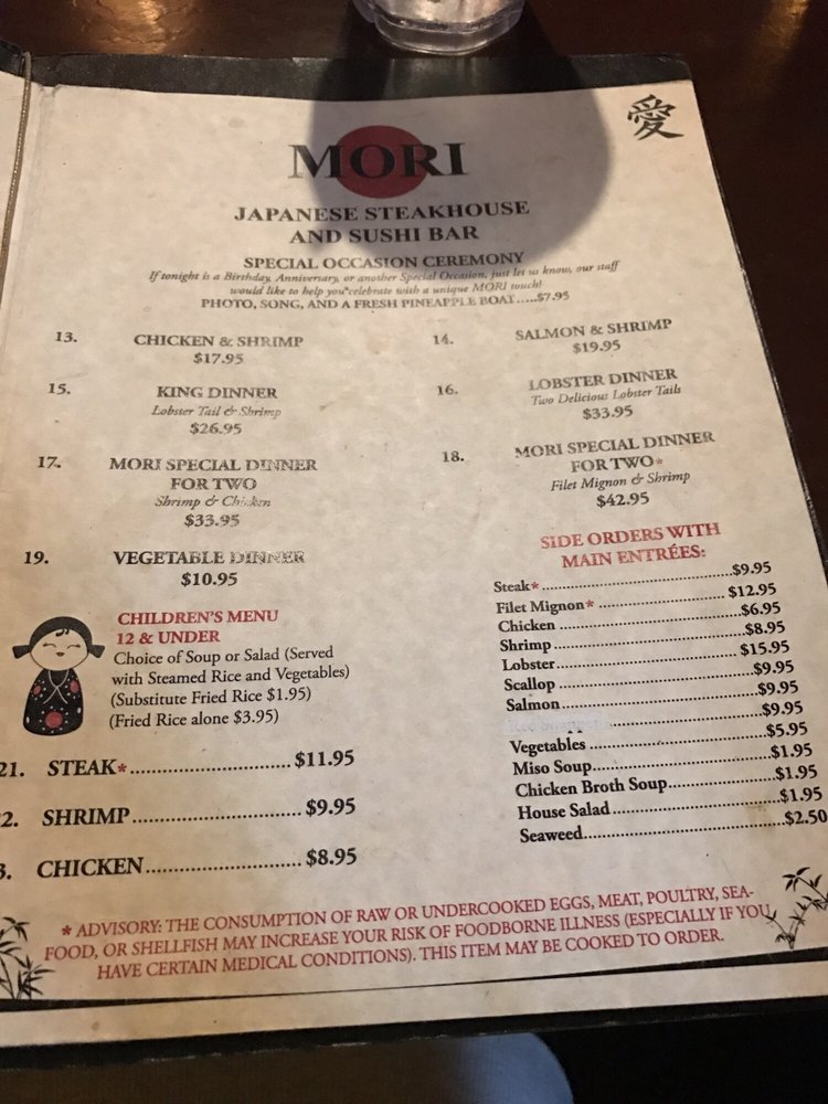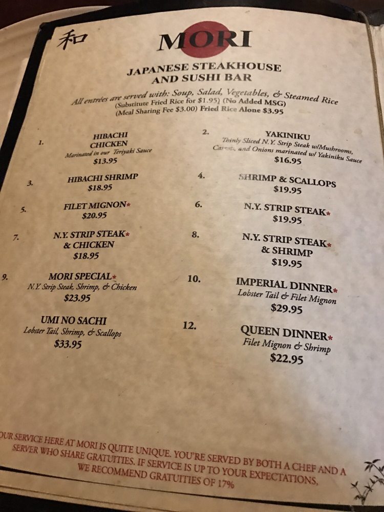 Mori Japanese Steakhouse & Sushi Bar Menu
